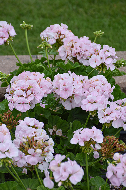Maverick Appleblossom Geranium will grow to be about 16 inches tall at maturity, with a spread of 14 inches. When grown in masses or used as a bedding plant, individual plants should be spaced approximately 12 inches apart. Its foliage tends to remain dense right to the ground, not requiring facer plants in front. Although it's not a true annual, this fast-growing plant can be expected to behave as an annual in our climate if left outdoors over the winter, usually needing replacement the following year. As such, gardeners should take into consideration that it will perform differently than it would in its native habitat.