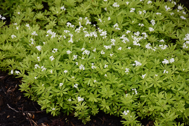Sweet Woodruff features dainty lightly-scented white star-shaped flowers at the ends of the stems in mid spring. Its fragrant narrow leaves remain light green in color throughout the year.
