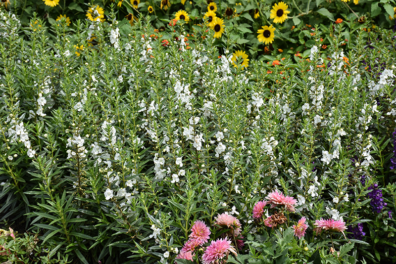 Angelface® White Angelonia has masses of beautiful spikes of white pea-like flowers rising above the foliage from late spring to late summer, which are most effective when planted in groupings. The flowers are excellent for cutting. Its small fragrant narrow leaves remain green in color throughout the year.