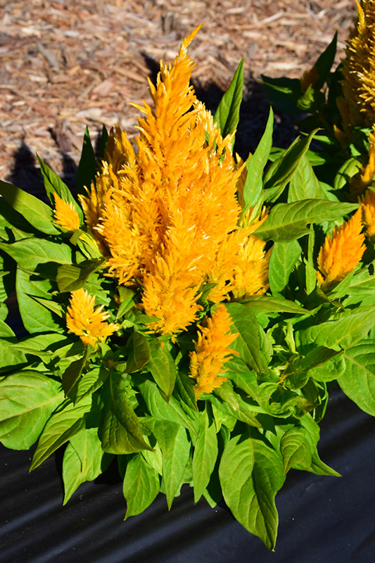 First Flame Yellow Celosia features showy plumes of yellow flowers rising above the foliage from early summer to mid fall. The flowers are excellent for cutting. Its pointy leaves remain green in color throughout the season.