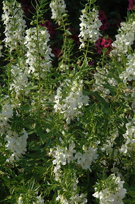 Carita White Angelonia has masses of beautiful spikes of white pea-like flowers rising above the foliage from late spring to late summer, which are most effective when planted in groupings. The flowers are excellent for cutting. Its small fragrant narrow leaves remain green in color throughout the year.