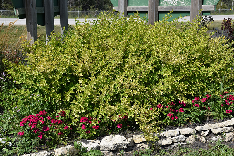 Festivus Gold® Ninebark will grow to be about 4 feet tall at maturity, with a spread of 4 feet. It has a low canopy. It grows at a medium rate, and under ideal conditions can be expected to live for approximately 30 years.