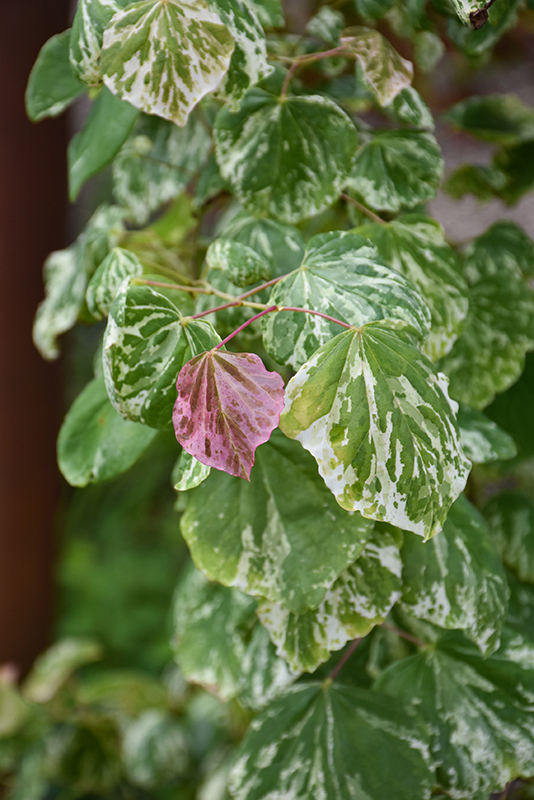 A spectacular variety that is showy all season: magenta flowers held tightly on bare branches in early spring; deep green leaves splashed with white and gray-green in summer; yellow fall color; a great small ornamental tree for specimen use