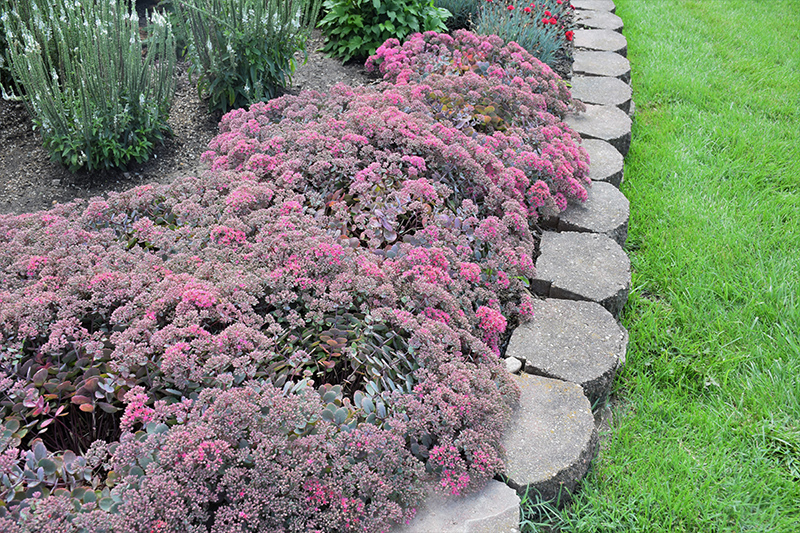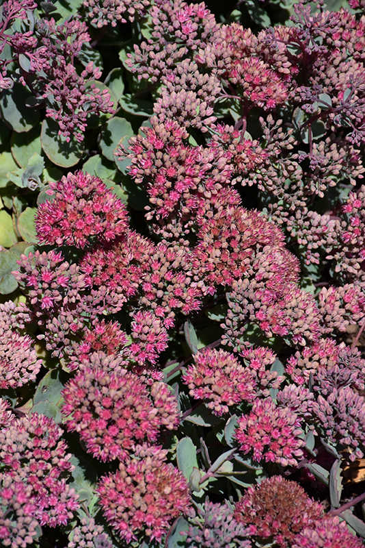 A compact, mounded stonecrop with large clusters of salmon pink flowers held atop blue-green succulent foliage; a drought-tolerant perennial that does best in poor soils; a colorful groundcover or feature in containers or rock gardens