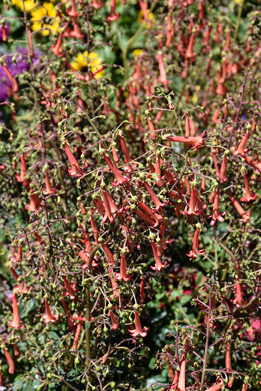 An easy-care variety, presenting showy clusters of dangling, deep red tubular flowers; a sensational show from midsummer into fall; great along borders or in containers; may remain evergreen in mild winter regions