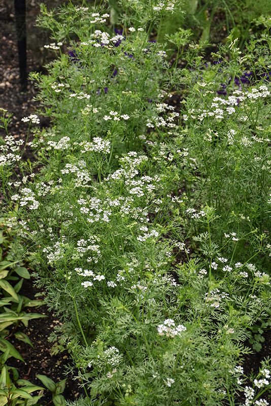 Santo Cilantro will grow to be about 18 inches tall at maturity extending to 24 inches tall with the flowers, with a spread of 18 inches. Its foliage tends to remain dense right to the ground, not requiring facer plants in front. This fast-growing annual will normally live for one full growing season, needing replacement the following year.