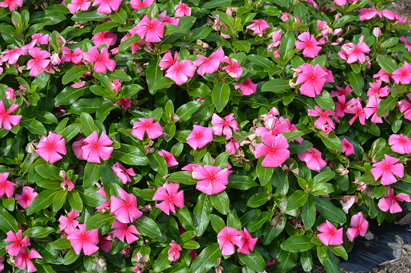A well branched, floriferous and disease resistant variety; large showy pink blooms with rose centers are perfect for adding color to borders, containers, hanging baskets and rock gardens; heat and drought tolerant; no deadheading needed