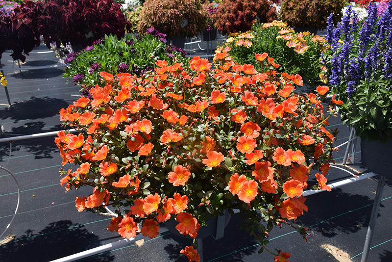 Mega Pazzaz™ Orange Portulaca is an herbaceous annual with a trailing habit of growth, eventually spilling over the edges of hanging baskets and containers. It brings an extremely fine and delicate texture to the garden composition and should be used to full effect.