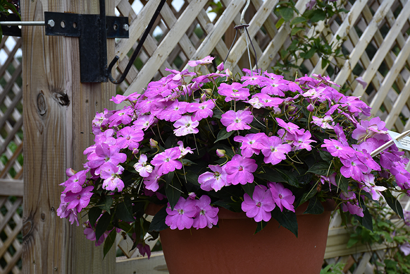 SunPatiens® Compact Lavender Splash Impatiens features bold lavender round flowers with pink overtones and a hot pink flare at the ends of the stems from mid spring to early fall, which emerge from distinctive rose flower buds. Its pointy leaves remain dark green in color throughout the season.