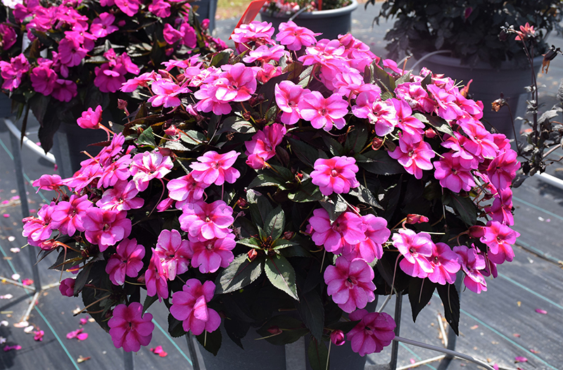SunPatiens® Compact Purple Candy Impatiens is a fine choice for the garden, but it is also a good selection for planting in outdoor containers and hanging baskets. It can be used either as 'filler' or as a 'thriller' in the 'spiller-thriller-filler' container combination, depending on the height and form of the other plants used in the container planting. It is even sizeable enough that it can be grown alone in a suitable container. Note that when growing plants in outdoor containers and baskets, they may require more frequent waterings than they would in the yard or garden.