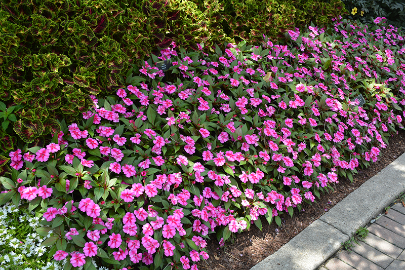 SunPatiens® Compact Purple Candy Impatiens is a dense herbaceous annual with a mounded form. Its medium texture blends into the garden, but can always be balanced by a couple of finer or coarser plants for an effective composition.