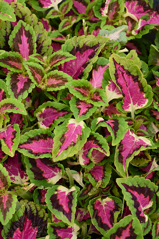 French Quarter Coleus' attractive crinkled pointy leaves emerge pink in spring, turning burgundy in color with distinctive chartreuse edges the rest of the year on a plant with an upright spreading habit of growth.