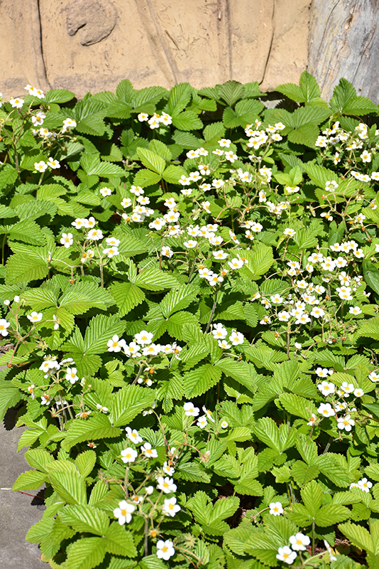 This species is the original parent to most of all cultivated strawberries; pretty white flowers bloom in open clusters in spring and summer and are followed by small edible berries that are high in flavor; great for naturalizing or in containers